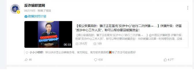 在“中国反诈骗联盟”的真面目被揭露以前,它是反诈领域的“领头羊”。自2023年1月1日的第一个投稿以来,“中国反诈联盟”截至目前已发布近千条反诈视频,其中许多视频播放量都已达到百万级别。