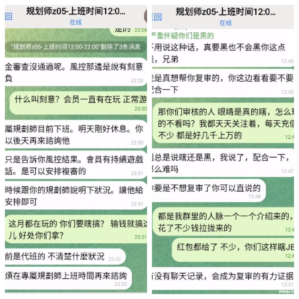 问他什么原因,说不出来,首先开始给你说让你提供会员发展证明,那么好我上传给他们聊天沟通截图,然后给你说让你提供录屏,好我录屏也提供了就让你等,一直拖到月中了我去问,又忽悠你说这才月中佣金还没有结束,上报老板在审核了,然后给你说5大联赛开始了让我继续维持会员保持活跃,这样好通过,好我也一直在维持会员,会员也一直在玩,8月又输了5W多负盈利,最后到现在我看他是实在圆不下去了
