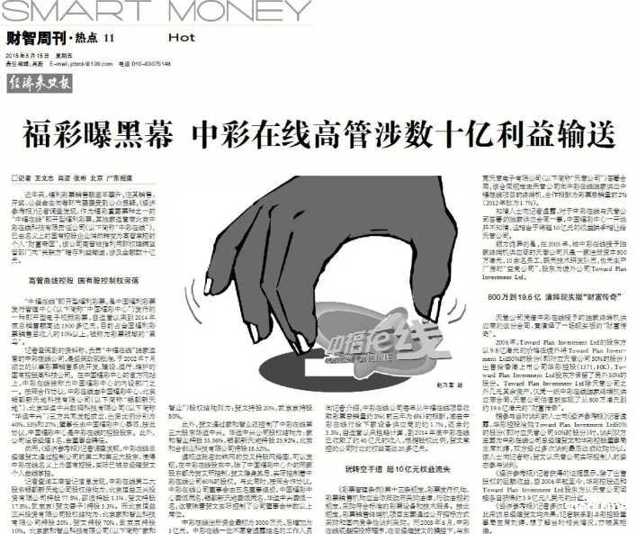 早在2015年的时候,《经济参考报》就刊发过一篇文章,叫《福彩曝黑幕,中彩在线高管涉数十亿利益输送》,直指中彩在线违规运营和利益输送问题。